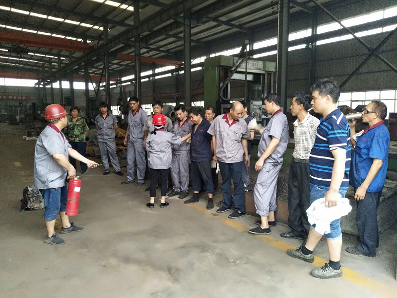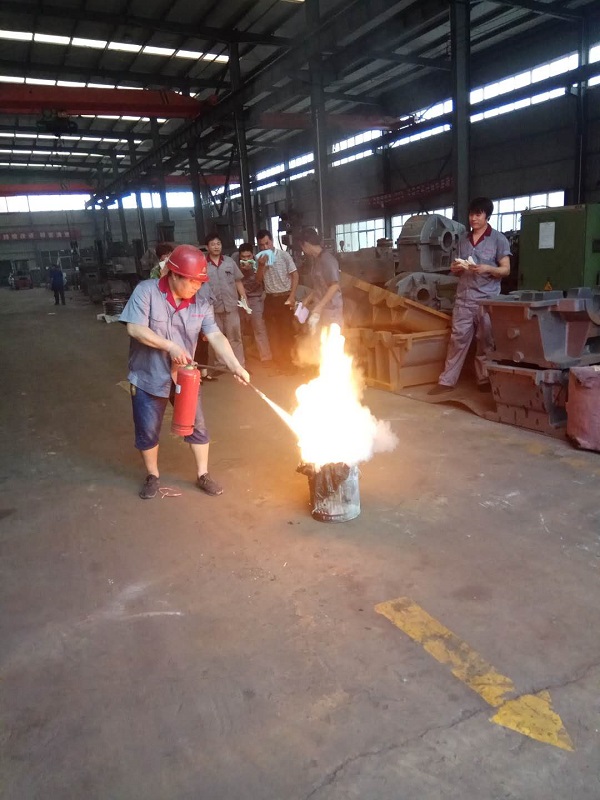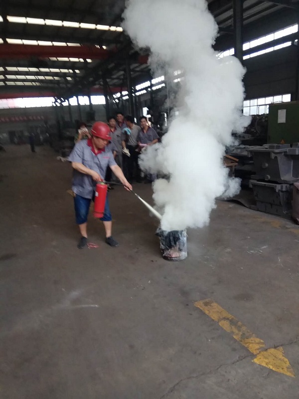 4、安全負責人和車間領導一同為大家展示發(fā)生火災時滅火器演示